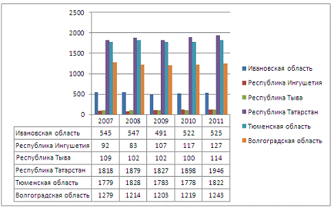Для исследования этого вопроса были рассмотрены те же 6 регионов России