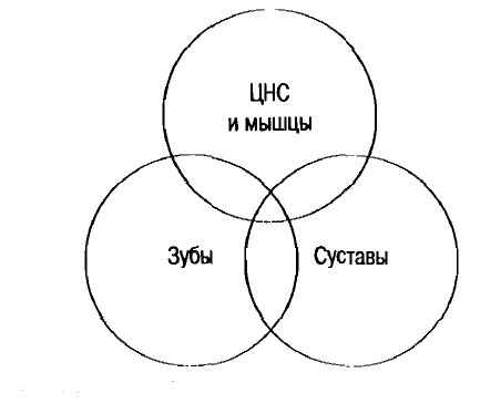 сложного взаимодействия жевательных мышц, височно-нижнечелюстных суставов и