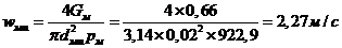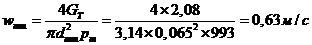 Скорость в штуцерах: dт.ш= 0,065