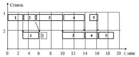 деталей в последовательности 1 - 2 - 3 - 4 - 5. Продолжительность цикла 19 мин.