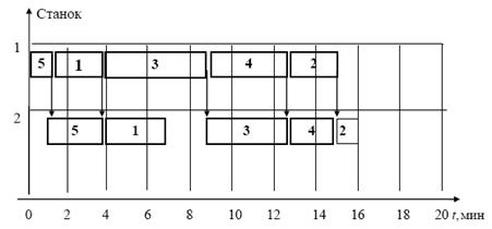 деталей в оптимальной последовательности 5 - 1 - 3 - 4 - 2. Продолжительность