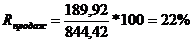 Рентабельность продаж составила 22%, это означает, что большая часть выручки