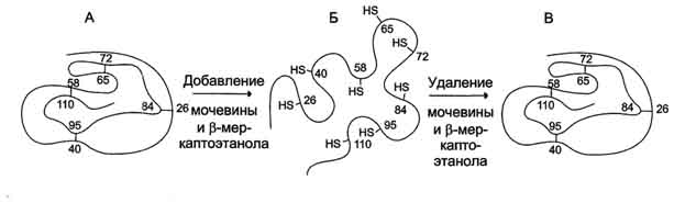 Рис. 2. Денатурация и ренативация рибонуклеазы. А - нативная молекула