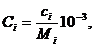где ci - заданная концентрация i-го компонента, мг/л; Mi - молекулярная