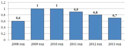 промышленного производства. Доля легкой отрасли совсем незначительна (1,3 %).