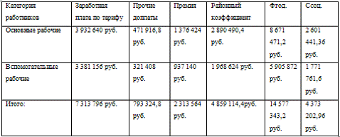 составляет 57 059 509 руб., средняя заработная плата вспомогательных рабочих