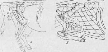 Тазовые конечности выдвинуты вперед. При таком положении средняя ягодичная