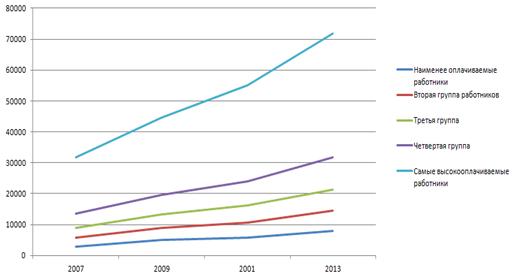 и регионам страны. Появились отрасли с высокими и низкими зарплатами, а также