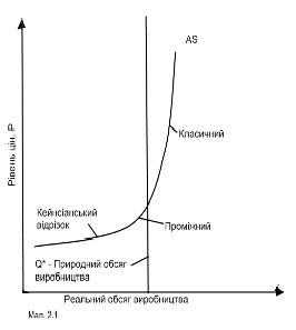сукупною пропозицією визначає обсяг національного продукту, рівень зайнятості,