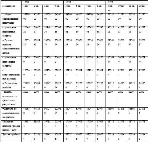 концу третьего года валовая прибыль составит 2976197, а чистая прибыль - 751149