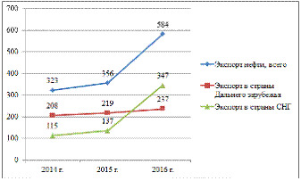 Структура экспорта нефти России в динамике до 2016 года представлена на