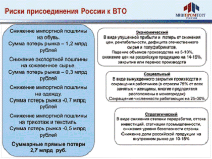 Для целей повышения конкурентных позиций России в рамках участия в ВТО в