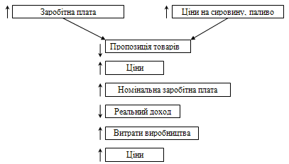 виробництва, коли ціни зростають через збільшення витрат виробництва. Ціни, що зросли вимагають нового збільшення витрат