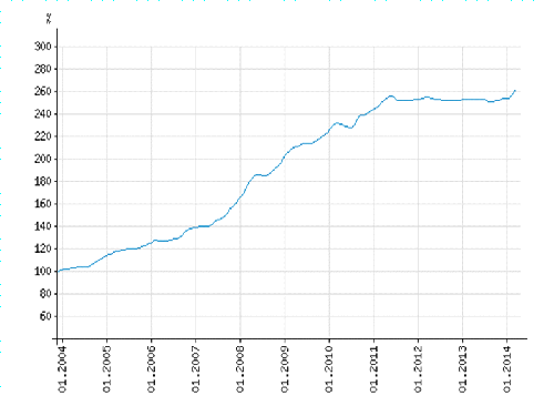 навпаки дедалі більше зростає. Її сумарний індекс за період з 2004 по 2014 роки