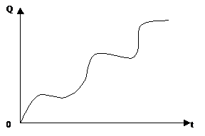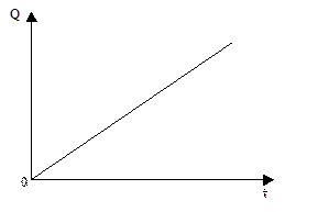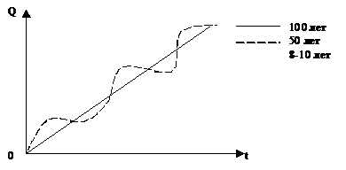 оси откладывается время (t), по вертикали - объем производства (Q).