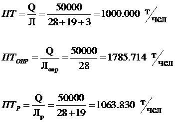 труда: а) выработка на одного работающего, т/год б) выработка на одного