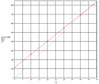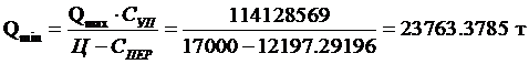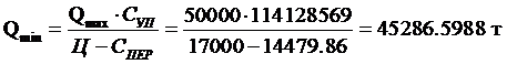 безубыточности находится на Q = 45000 т и денежный эквивалент