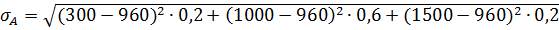 µА=300·0,2+1000·0,6+1500·0,2=960;