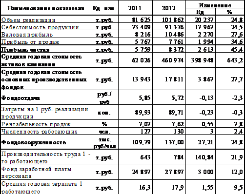 рабочего предприятия за 2012 г. выше на 231,24 тыс. руб. или 28,61% по