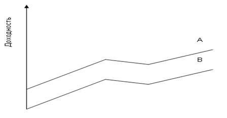 доходность по активу А растет, то доходность по активу В падает, и наоборот.