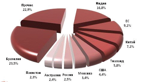 производству сахара являлась Бразилия, покрывавшая практически четверть от
