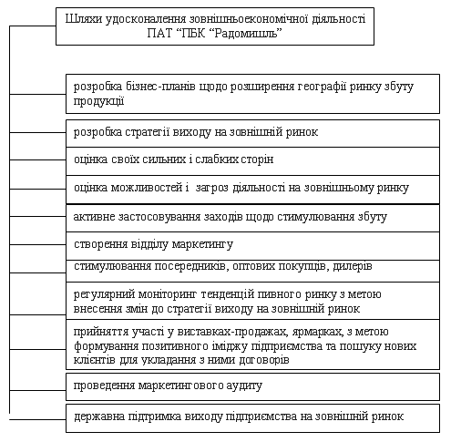маркетингової діяльності орієнтованої на зовнішній ринок ПАТ “ПБК “Радомишль” необхідно: