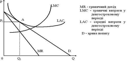 короткострокову та довгострокову рівновагу фірми при монополістичній