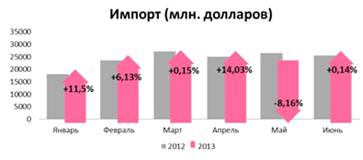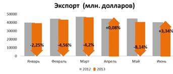 Таким образом, видно, что в первом полугодии 2013 году экспорт снизился,