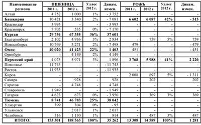 поставки пшеницы продовольственной являются Курган (36%), Тюмень (25%) и Омск