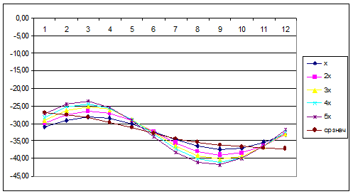 все значения (при к = 1,…,5)и занесем их в таблицу 12.
