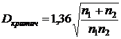 (случай двух больших независимых выборок n1 и n2, двусторонняя критическая