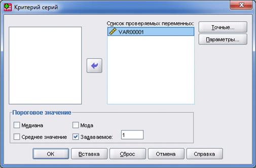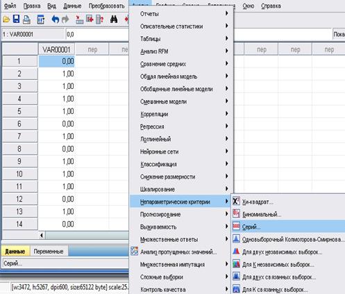 Для реализации теста последовательностей в программе SPSS, необходимо