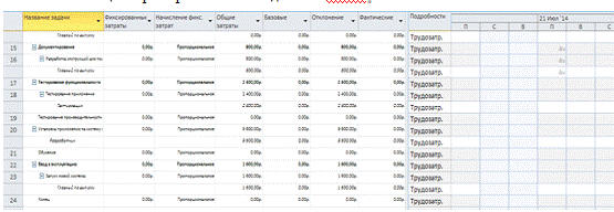 Рис. 2.6.2 Таблица затрат проекта по методологии