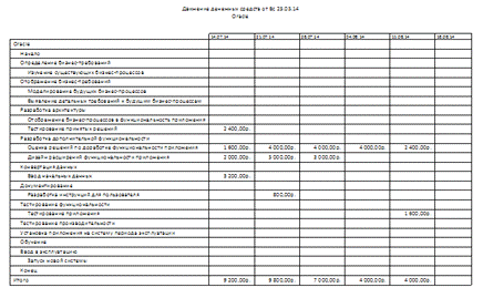 Рис. 2.6.1 Таблица затрат проекта по методологии