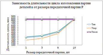 длительности цикла от изменения размера передаточной партии.