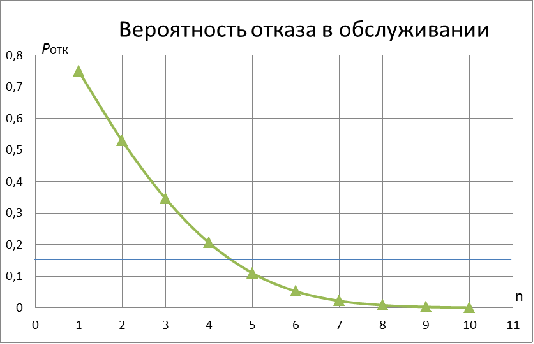 вероятности отказа в обслуживании от числа каналов (Рис.6)