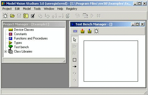 модели автоматически открываются окно "Test bench", которое является