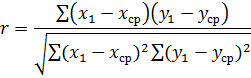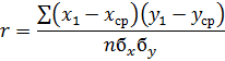 средняя сумма произведений нормированных отклонений. Обозначается буквой r
