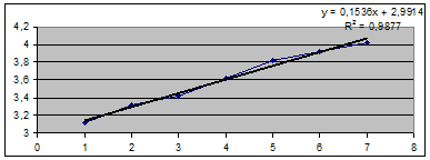 у8=0,15355*8 + 2,9915 = 4,22