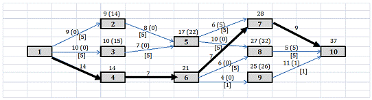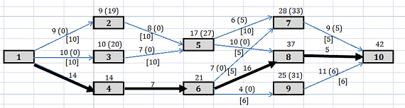 ранние и поздние сроки совершения событий, критический путь и др. Для