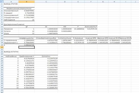 дисперсионного анализа, доверительных интервалов и остатки линейной регрессии.