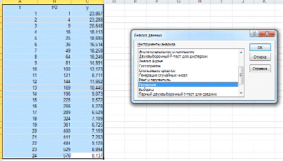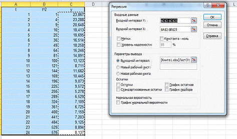 месяцев. Второй - эти номера, возведенные в квадрат, Третий - наблюдаемая