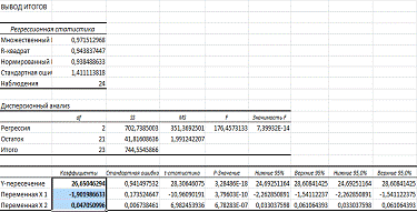 Коэффициенты регрессии (показаны жирным шрифтом)
