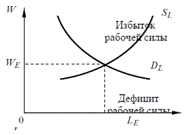 предложению труда, т.е. рынок труда находится в равновесном состоянии (рис.3).