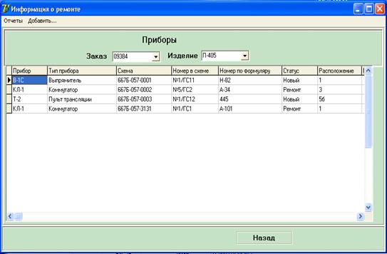 степени готовности и нахождении ремонтируемых приборов, так как эти данные