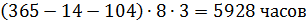рабочей неделе с 8-часовыми сменами 104 (52 воскресения и 52 субботы).