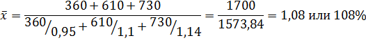 равна отношению суммы индивидуальных значений признака к количеству признаков в