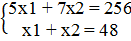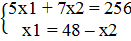 ) 5х1 + 7х2 = 256