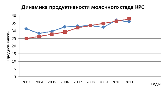 2011 год наблюдается тенденция роста продуктивности молочного стада КРС. Если в