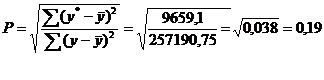 равно 029, т.е. разница между квадратом коэффициента корреляции и коэффициентом